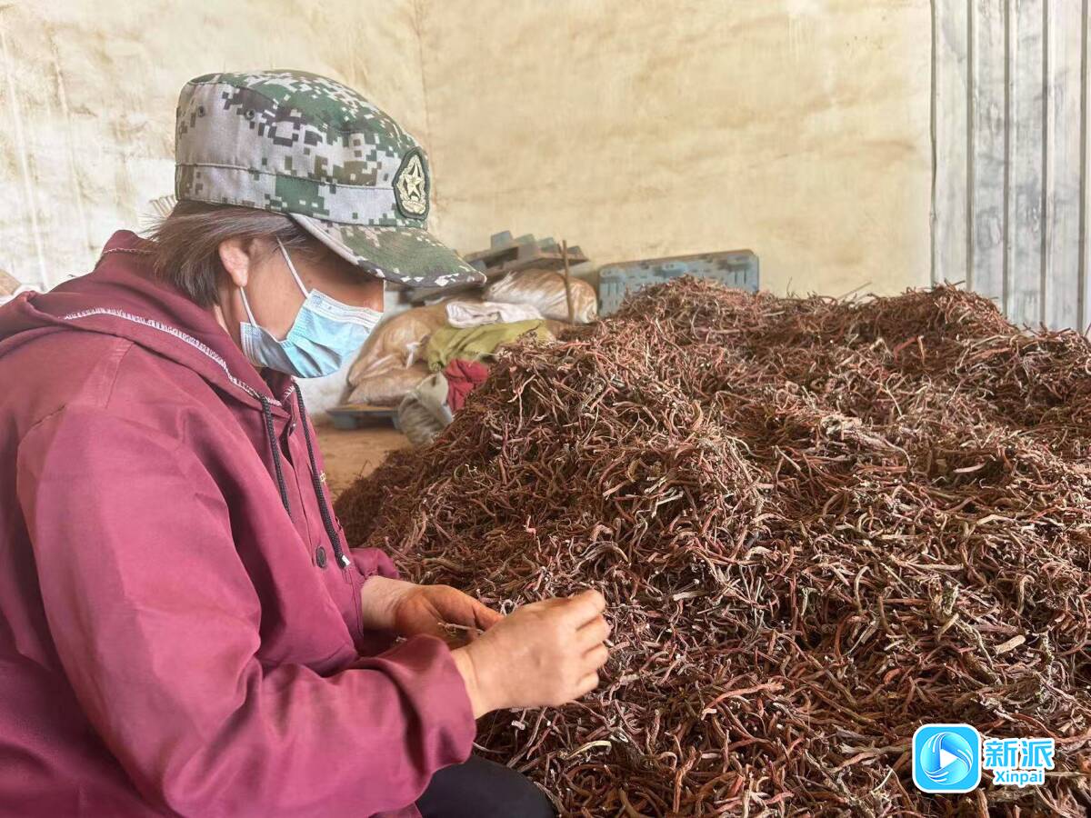 種植戶對丹參進行挑選。
